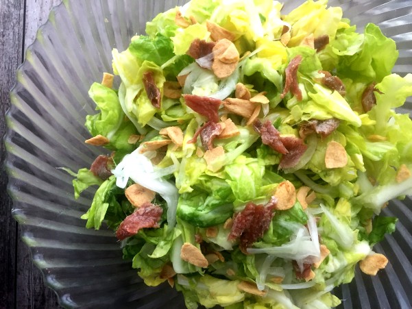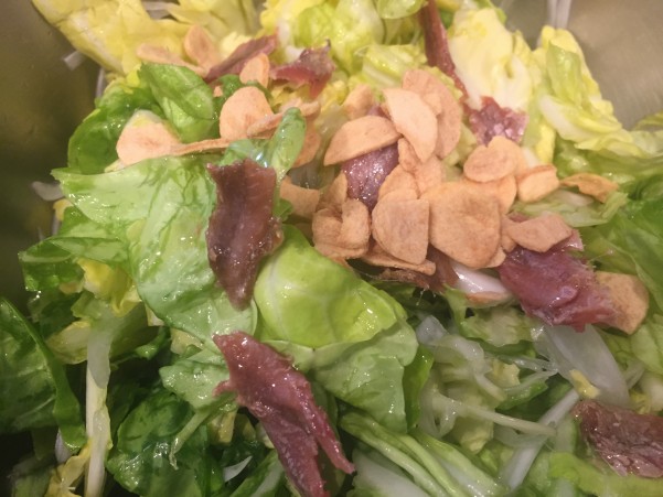 ②塩をふって軽くもみ ちぎったアンチョビ ワインヴィネガー