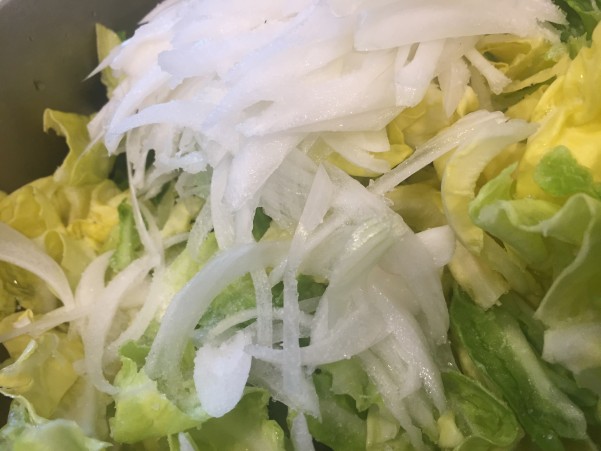 ①キャベツは洗ってから手で食べやすい大きさにちぎり