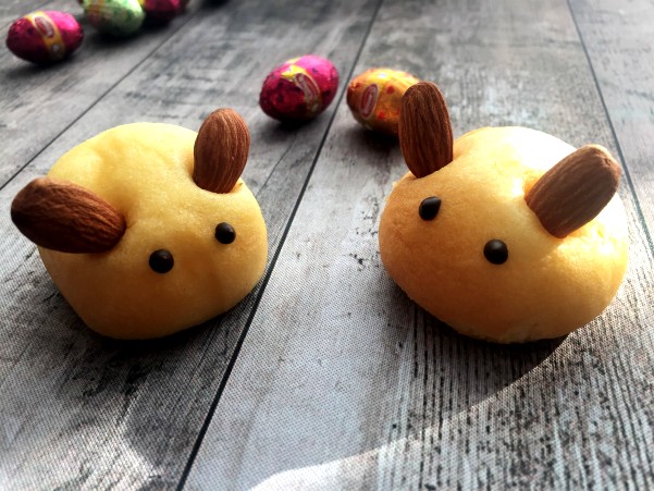 市販のたまごパンをウサギさんに・・・