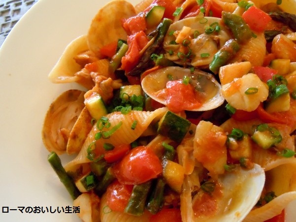 フレッシュトマトとヴォンゴレ ホタテのコンキリオー二 2012年04月19日 コンキリオー二 大きな貝の形をしたパスタにヴォンゴレとホタテ・・・まさに貝を合わせていきます~それにフレッシュトマトと ズッキーニ アスパラガスとお野菜もたっぷり~豪快な海の幸パスタですこちらグラニャ―ノ産のコンキリオーニ弾力があり 小麦の味のする おい ... 続きを読む