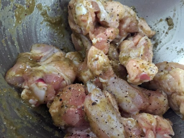 まずは鶏肉にゆずこしょう油と黒コショウを