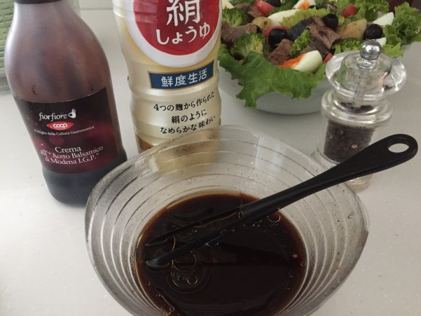 しょうゆのうま味に バルサミコのまろやかな酸味が
