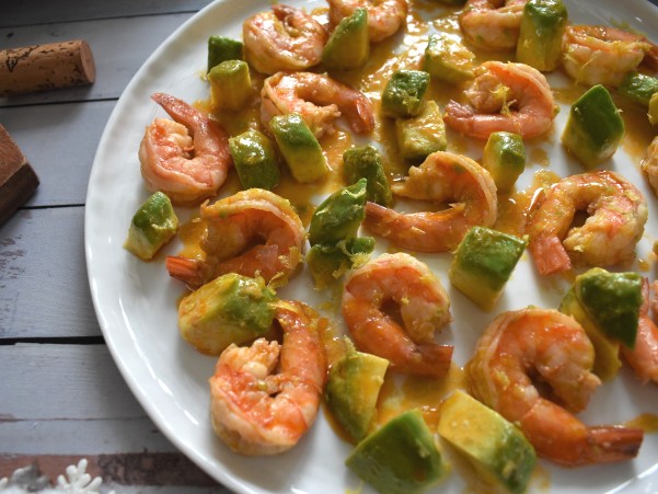 エビと アボカドのソテーです