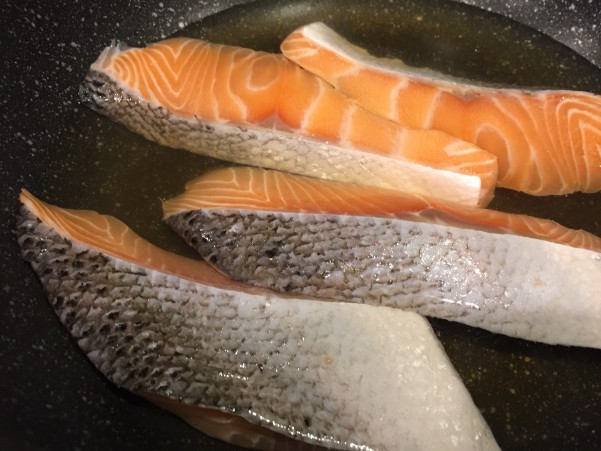 ②3~4分煮たら 取り出し 皮と小骨をとる