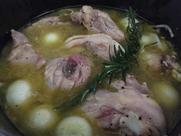 ③ペコロスと白ワイン ワインヴィネガーを加え アクをとりながらコトコトと煮る