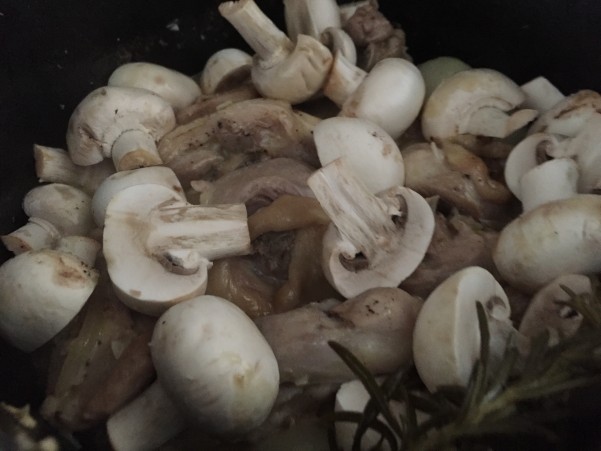 ④15分~20分ぐらい煮て煮汁が半量位になったらマッシュルームと