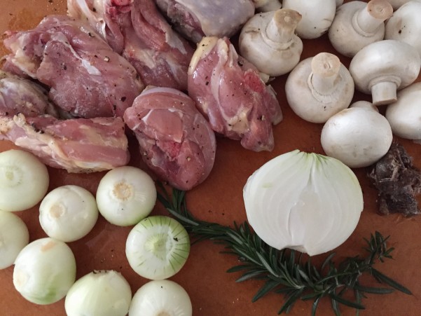 ①鶏肉に塩・コショウして にんにく アンチョビはみじん切り タマネギは