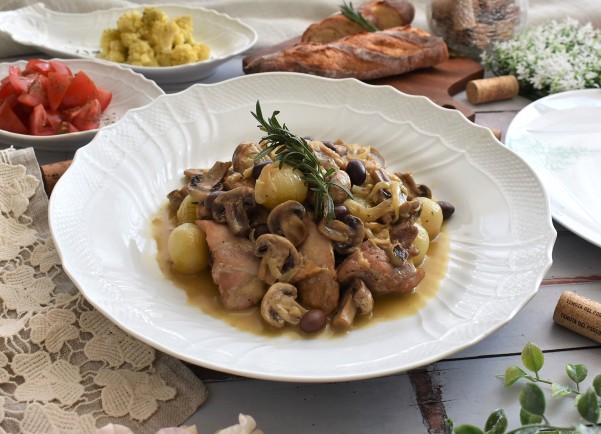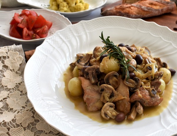 ワインヴィネガーが入るので鶏肉はやわらか~