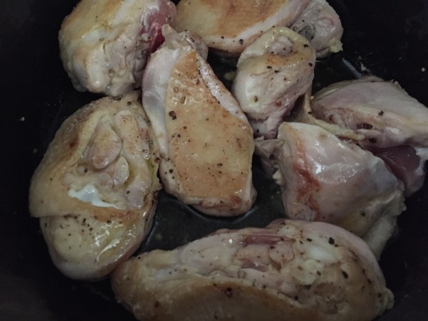 鶏肉は骨付き 塩と黒コショウをふっておきます