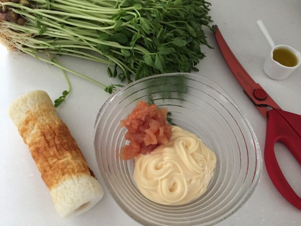 そんな豆苗を使った 「豆苗とちくわの明太マヨネーズ焼き」が
