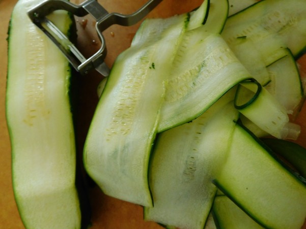 ズッキーニをピーラーで縦にスライス