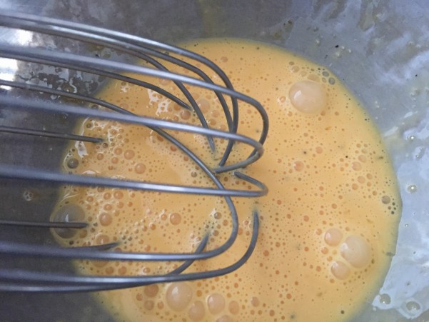 ①卵に豆乳クリームと塩・コショウを加え全体をよくかき混ぜる