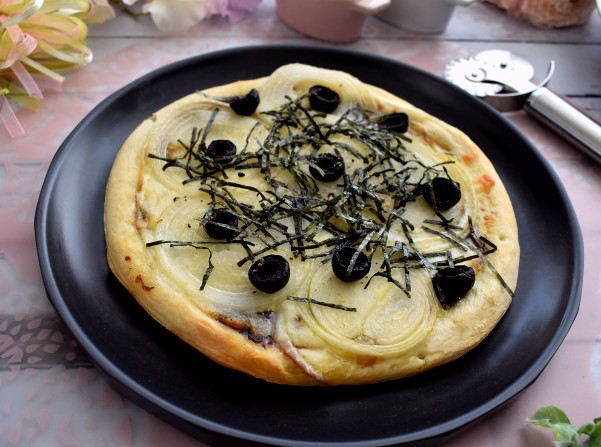 こちらの新玉ねぎと海苔のちょっと和風なピザ