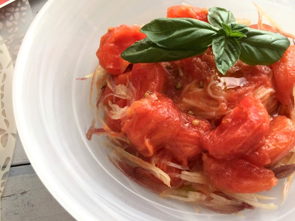 トマトたっぷりそうめんです