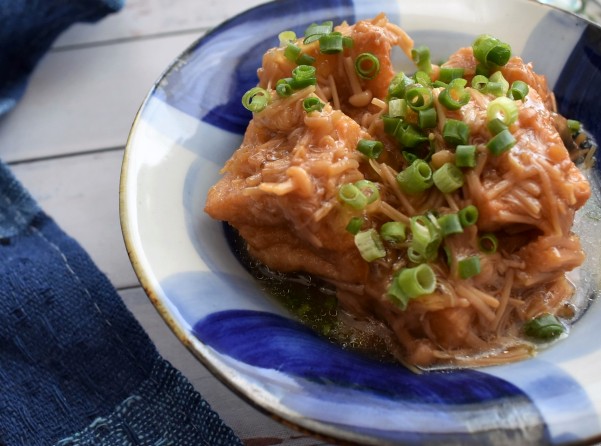厚揚げと なめ茸の瓶を使ったあと一品的な一皿~