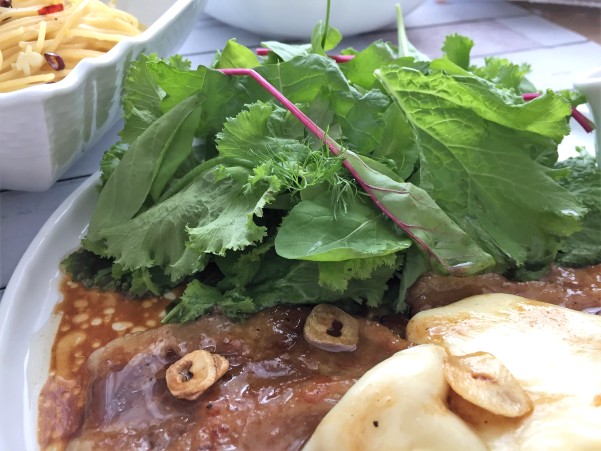 ちょこっと苦味のある葉っぱも入っているミックスサラダを