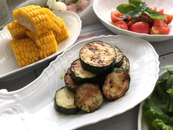 ズッキーニのグリルと 茹でトウモロコシ トマトサラダと