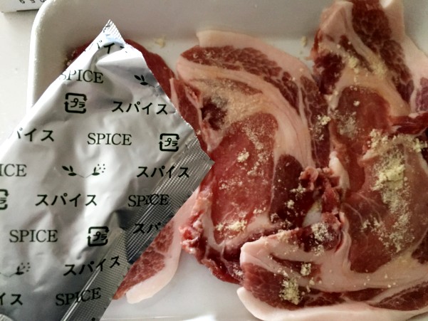 ポークステーキの箱の中には スパイスと調味液が入っています