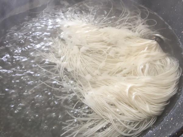 私はフライパンで茹でました