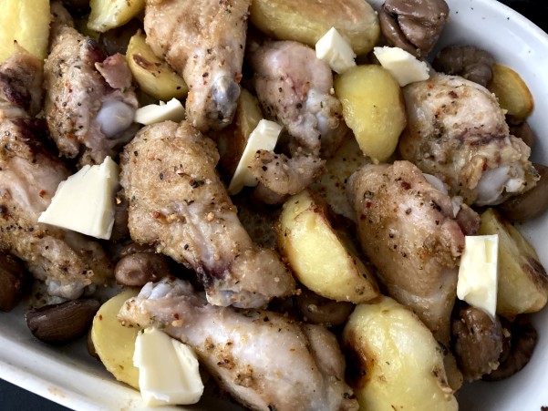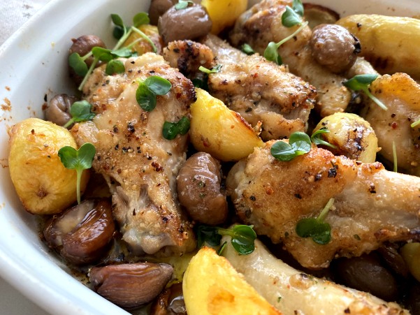 鶏手羽元と栗 ジャガイモのグリル