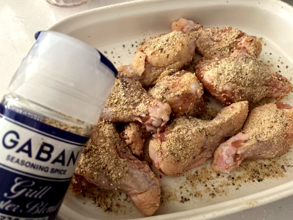 まずは鶏出羽元全体に しっかりとグリルマスターブレンドをふっていきます