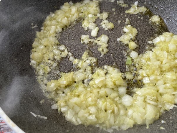 オリーブオイルに ザクみじん切りにした玉ねぎ