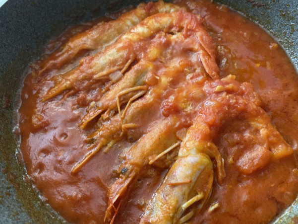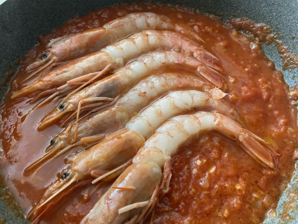 あたま付きなので エビのうま味がトマトソースに溶け込みます