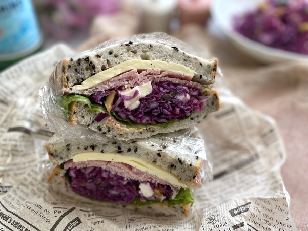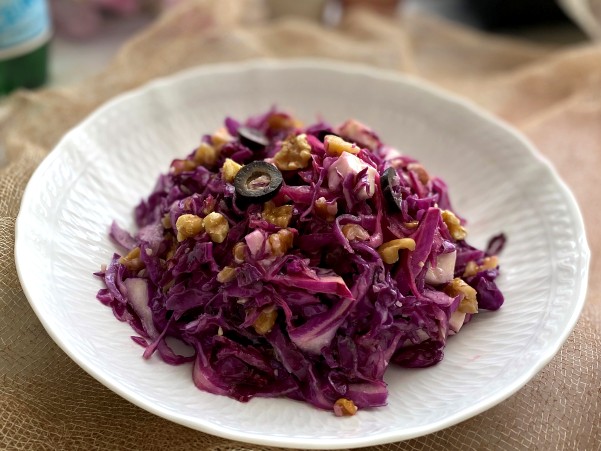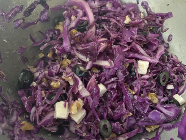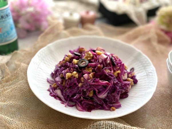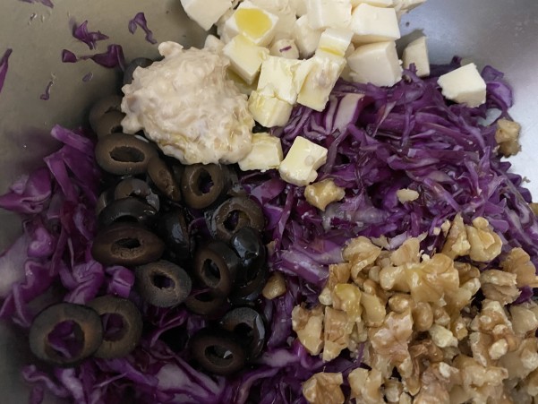 紫キャベツのほかに カリッとくるみ タレッジョチーズ 黒オリーブ