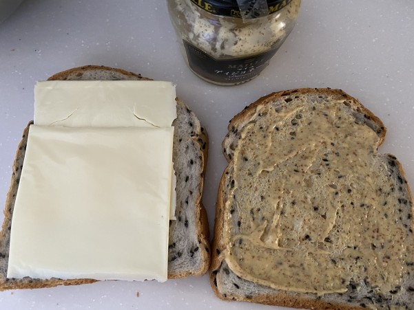 チーズと マスタードとマヨネーズを混ぜ合わせたようなディジョネーズを塗り