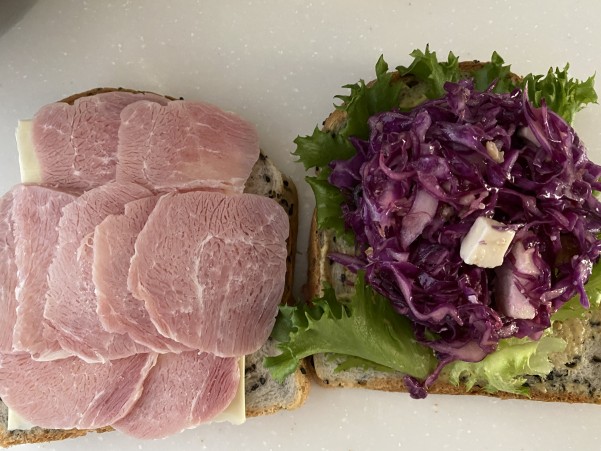 チーズの上にハム ディジョネーズの上にはフリルレタス