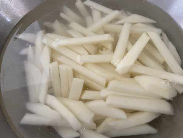 ①新じゃがはマッチ棒大ぐらいの拍子切りにして 5分ぐらい