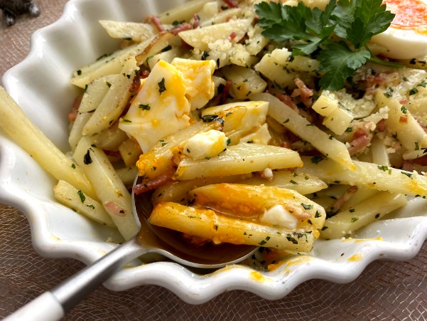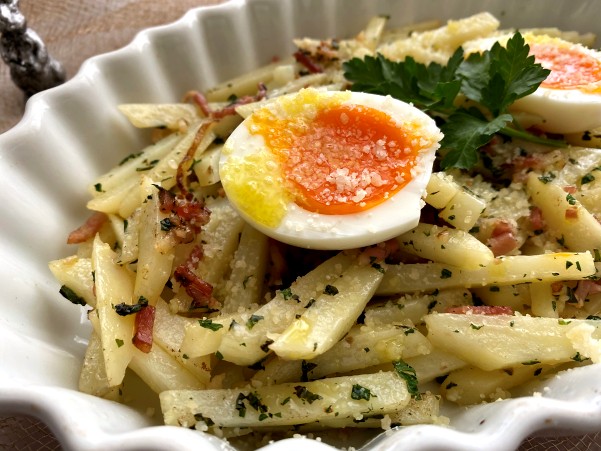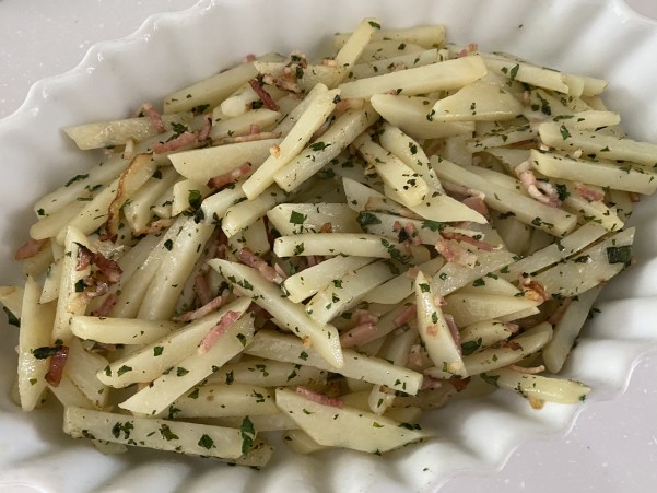 ベーコンとイタリアンパセリで炒め 塩・コショウして