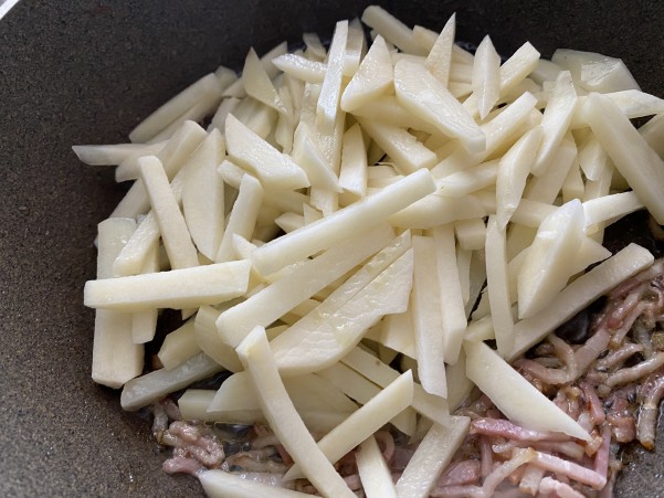 マッチ棒位のせん切りにしたジャガイモを