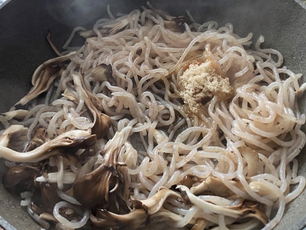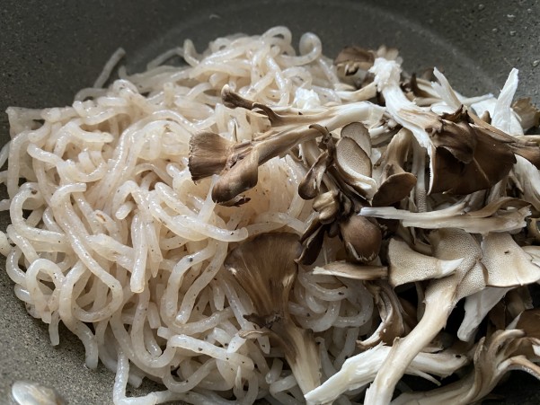 ざく切りにした糸こんにゃくと ほぐした舞茸を加え