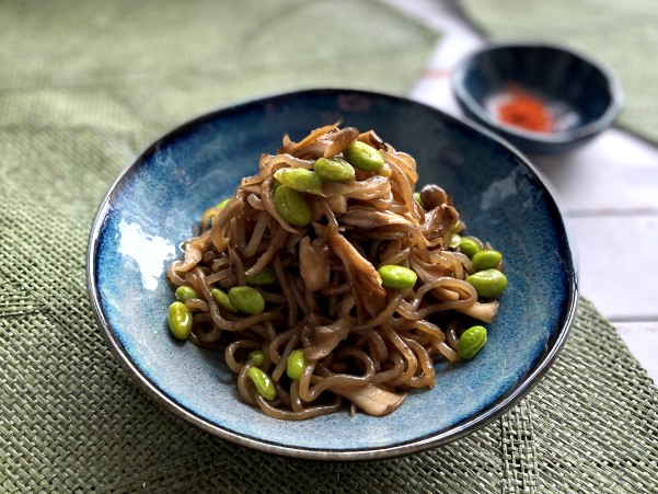 糸こんにゃくと舞茸のすき焼き風 枝豆添え~