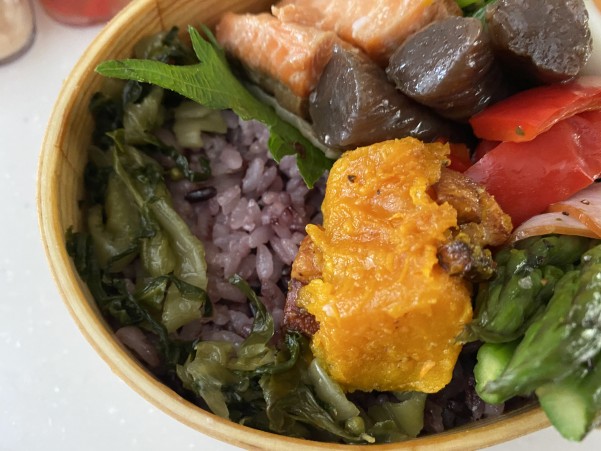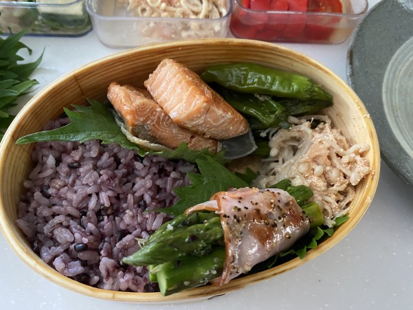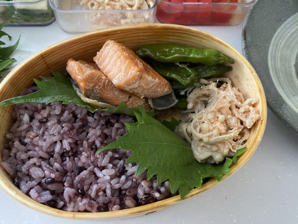 鮭の横に すき間埋めおかずから ししとうをねかせて