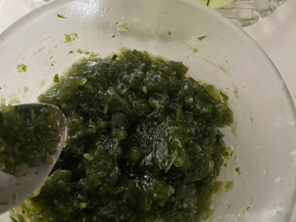 ポン酢とオリーブオイルを和えておく