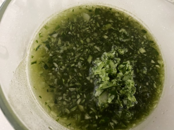 スライスしたきゅうりの 皮の部分をみじん切りにして