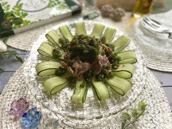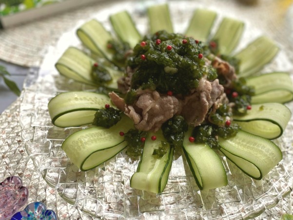 青汁ときゅうりの豚しゃぶ和えです