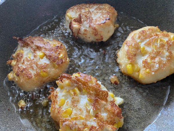 ひとつは茹でとうもろこしを加えます