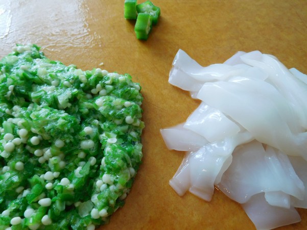 「ねばねばがたまらない~たたきオクラとイカの土佐酢がけ」が