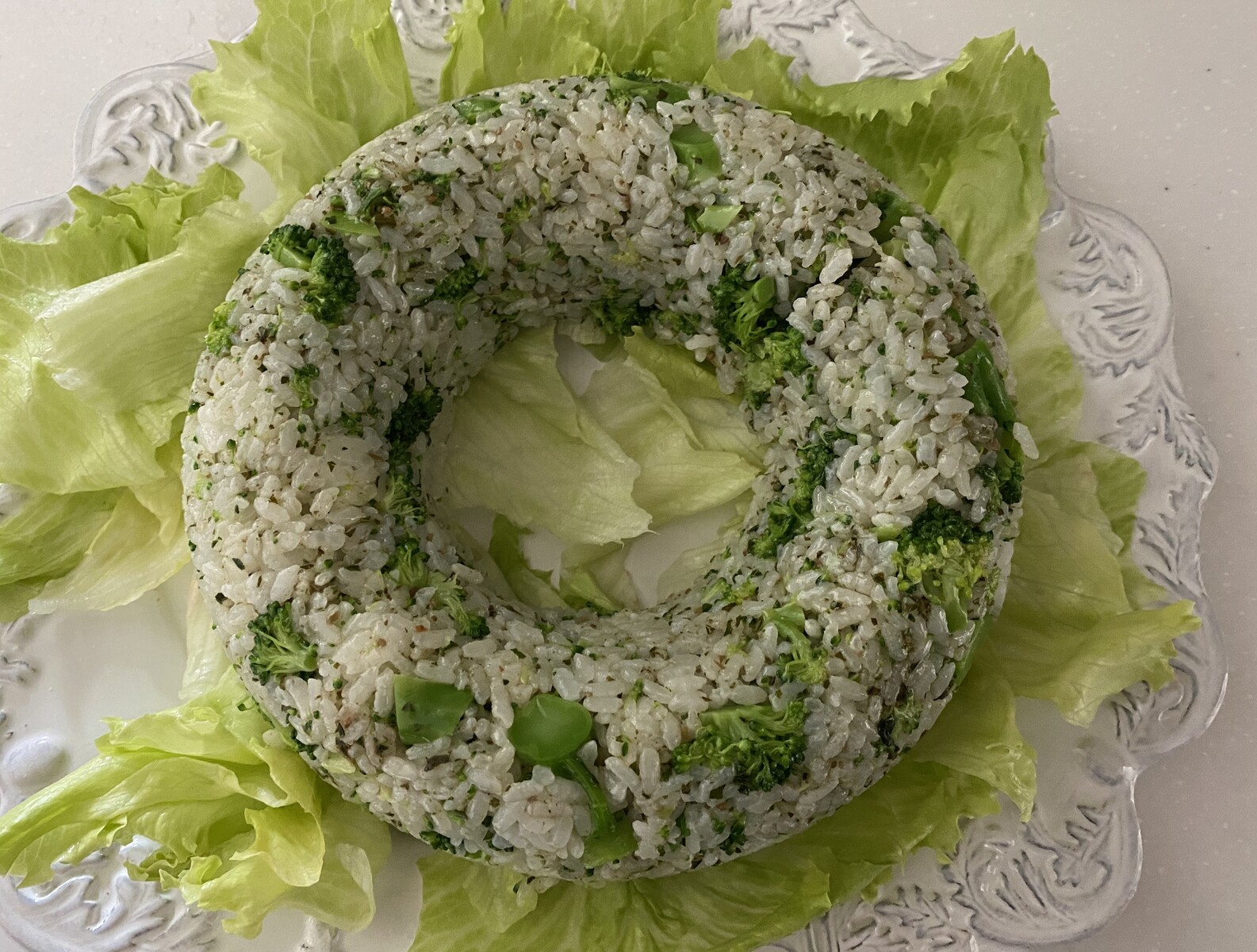 ④器にちぎったレタスをしき ドーナッツ型のご飯を盛り付け