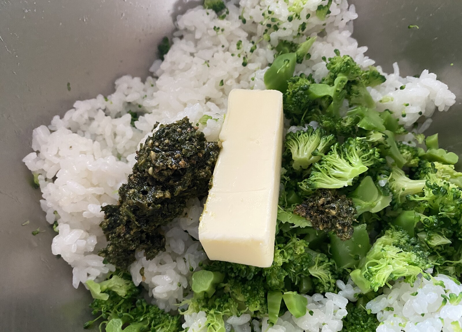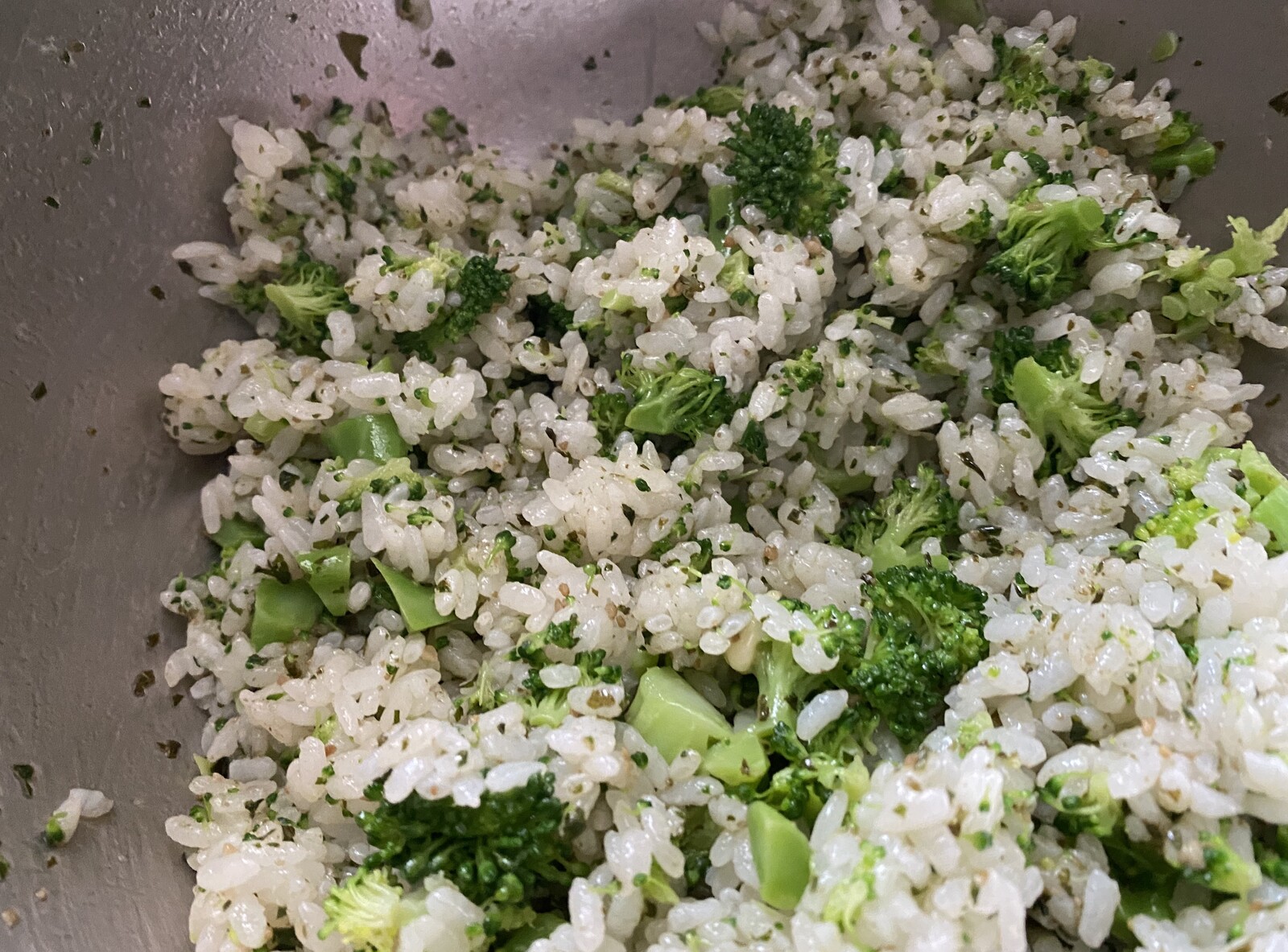 炊き立ての熱々ご飯に さっと茹でみじん切りにしたブロッコリー