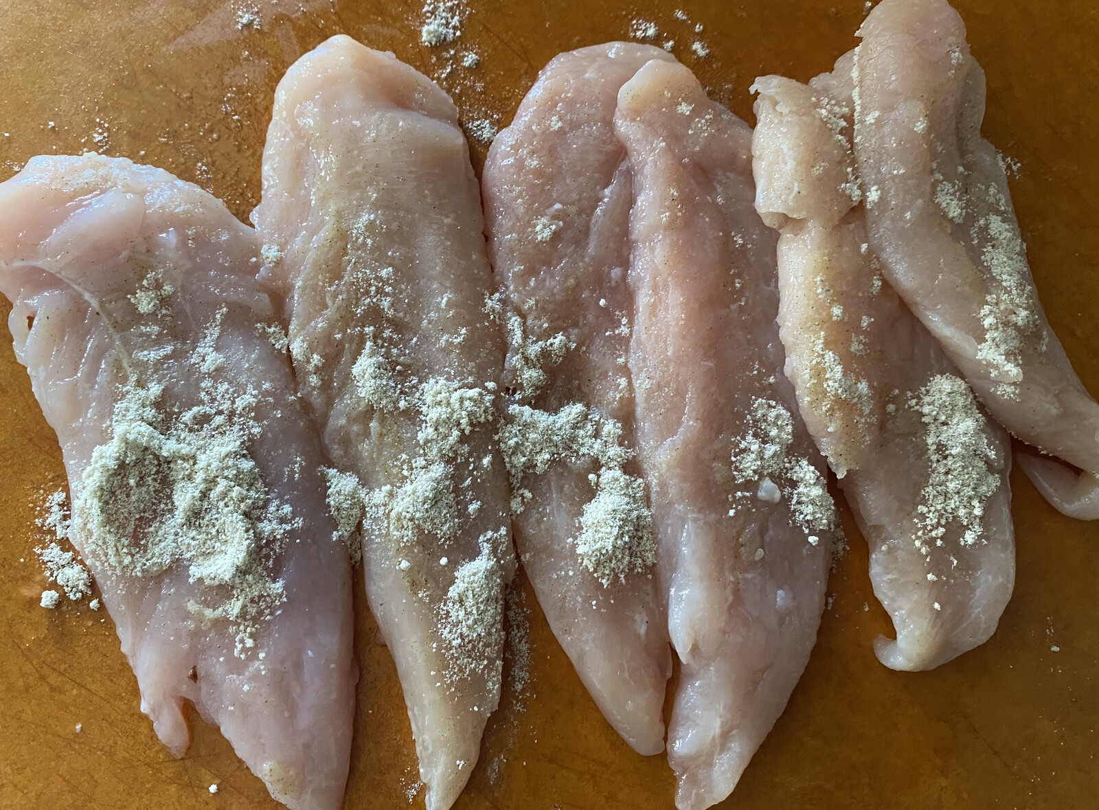 ②白味魚のソテーのスパイスを ささみの両面にまんべんなく