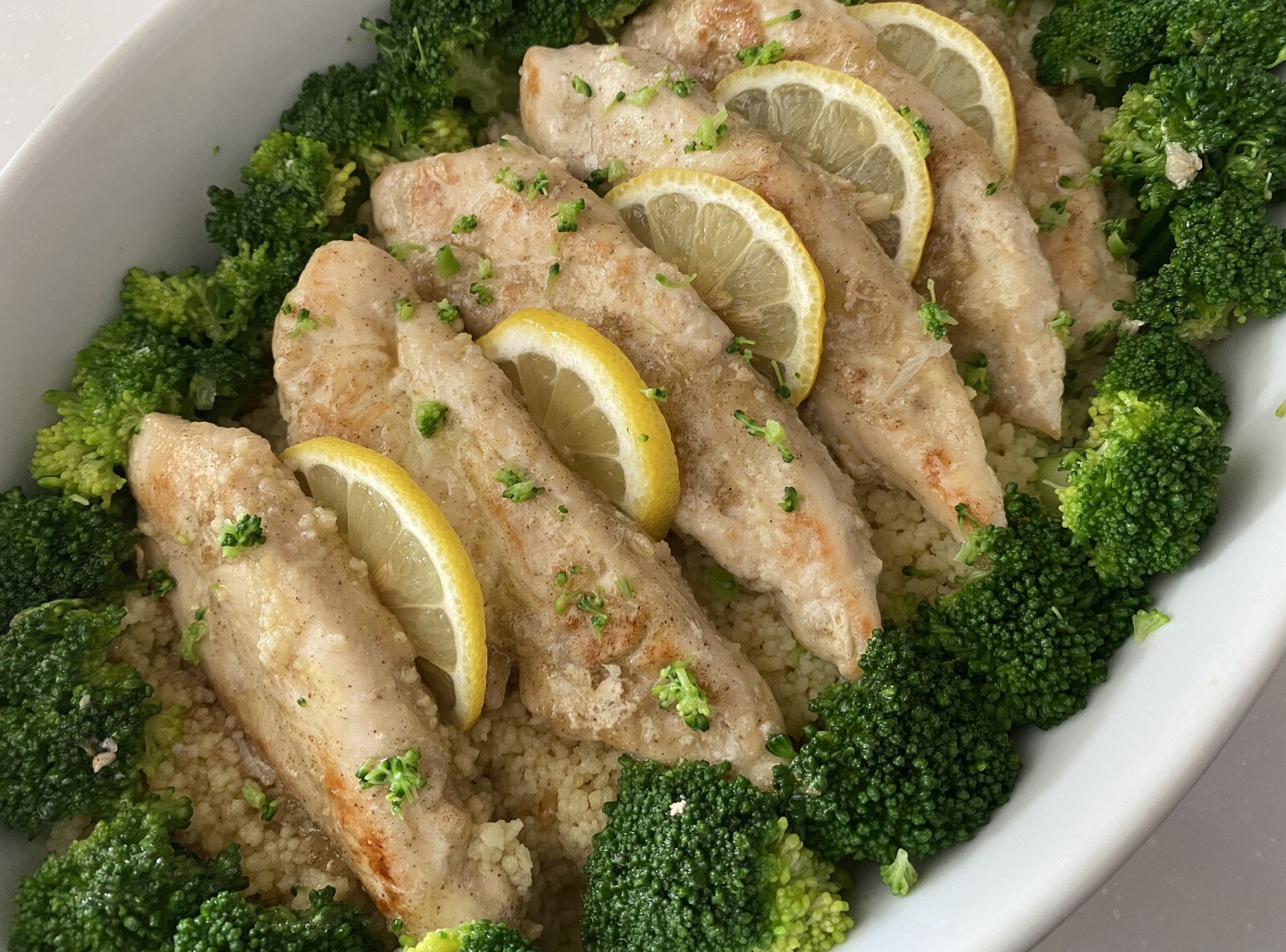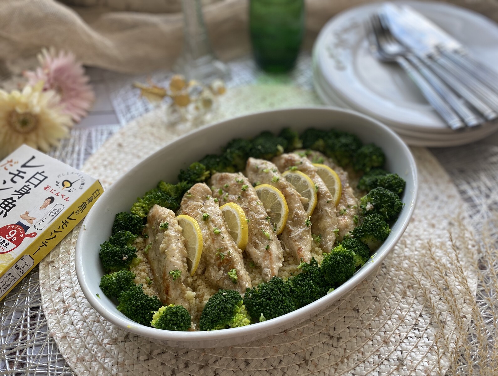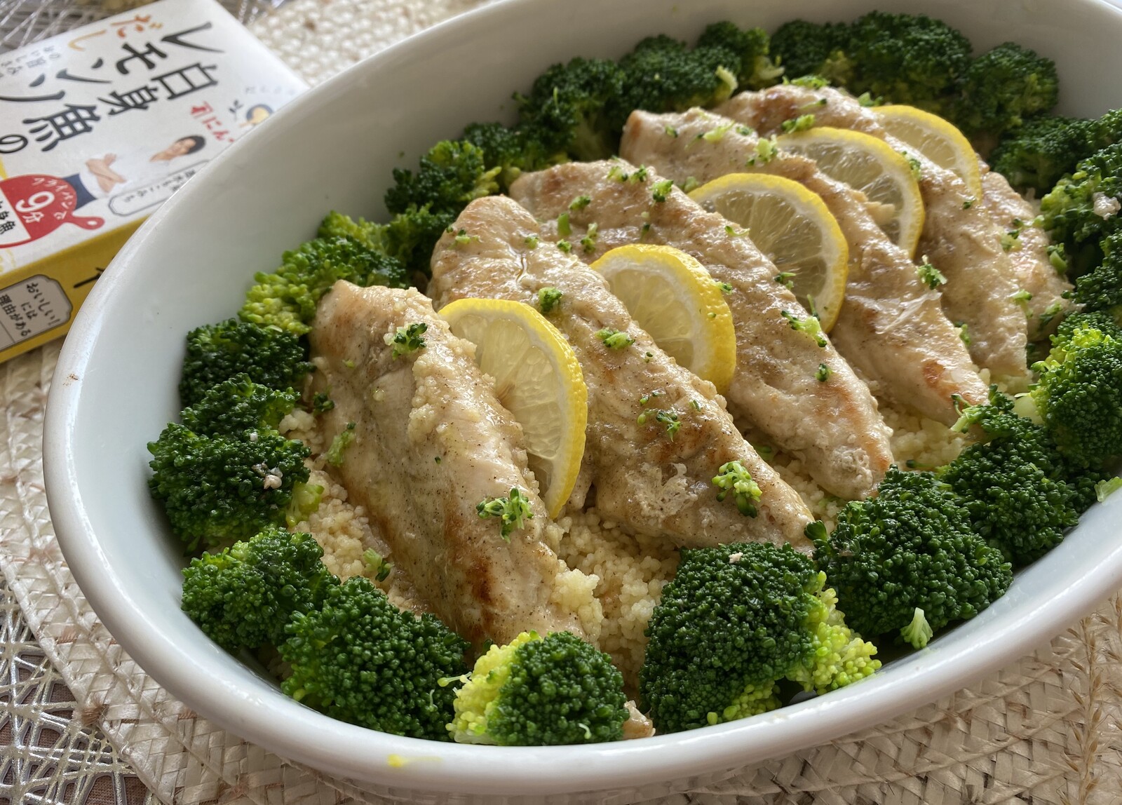 ささみのレモンソテー クスクスとブロッコリー添えです