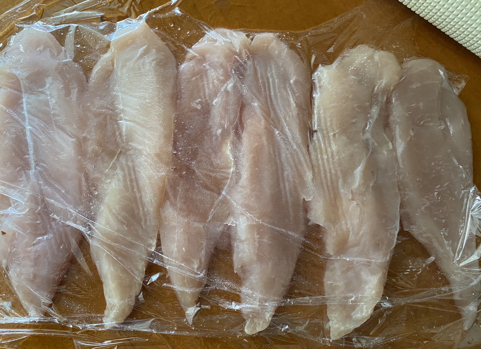 ささみはまな板の上にのせ ラップをかけて