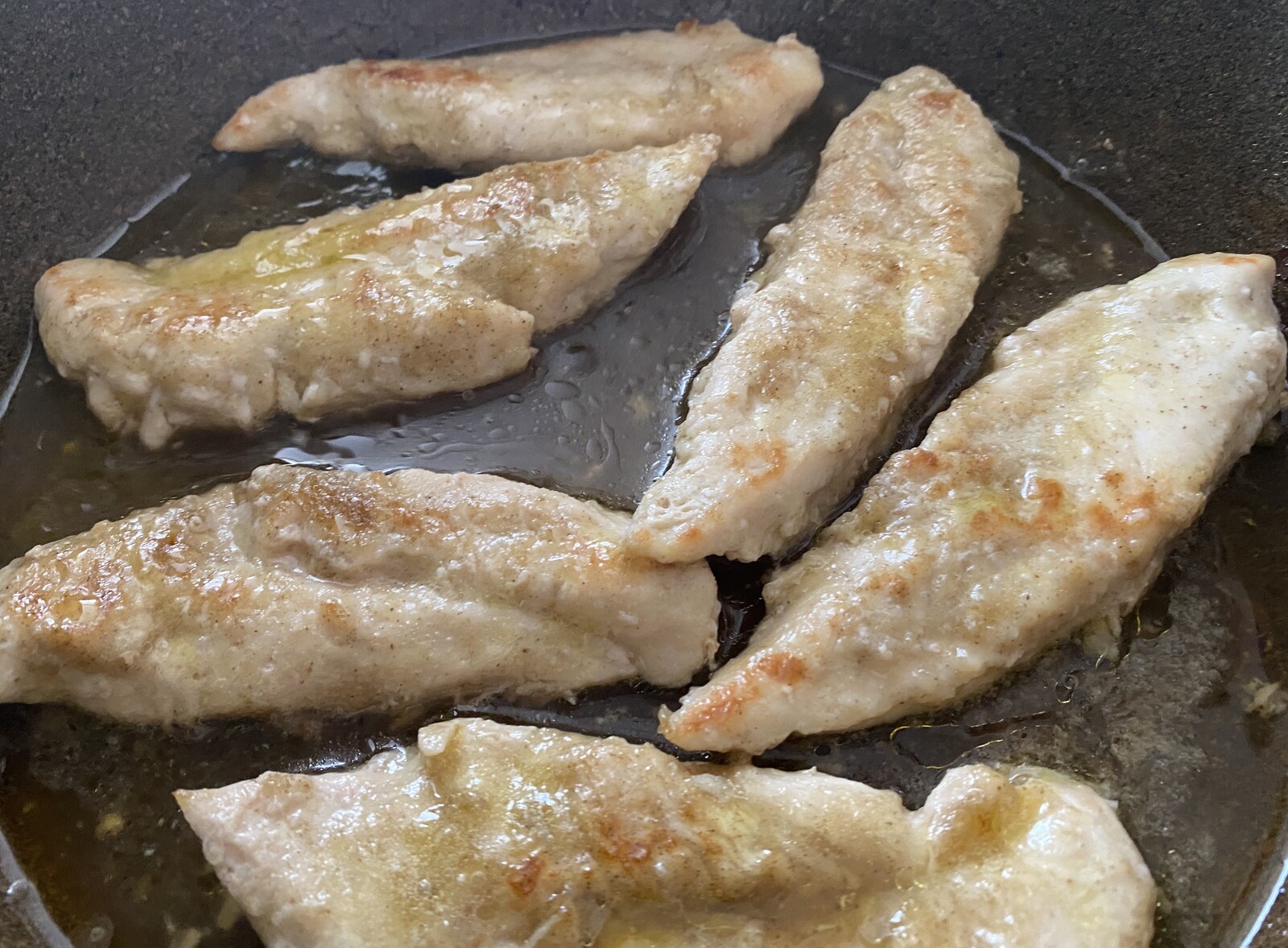 白味魚のレモンソテーの調味液を加え 蓋をして3分蒸し焼きにしたら