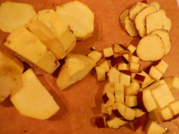 ①さつまいもは 1/3は皮をつけたまま1cmぐらいの角切りと