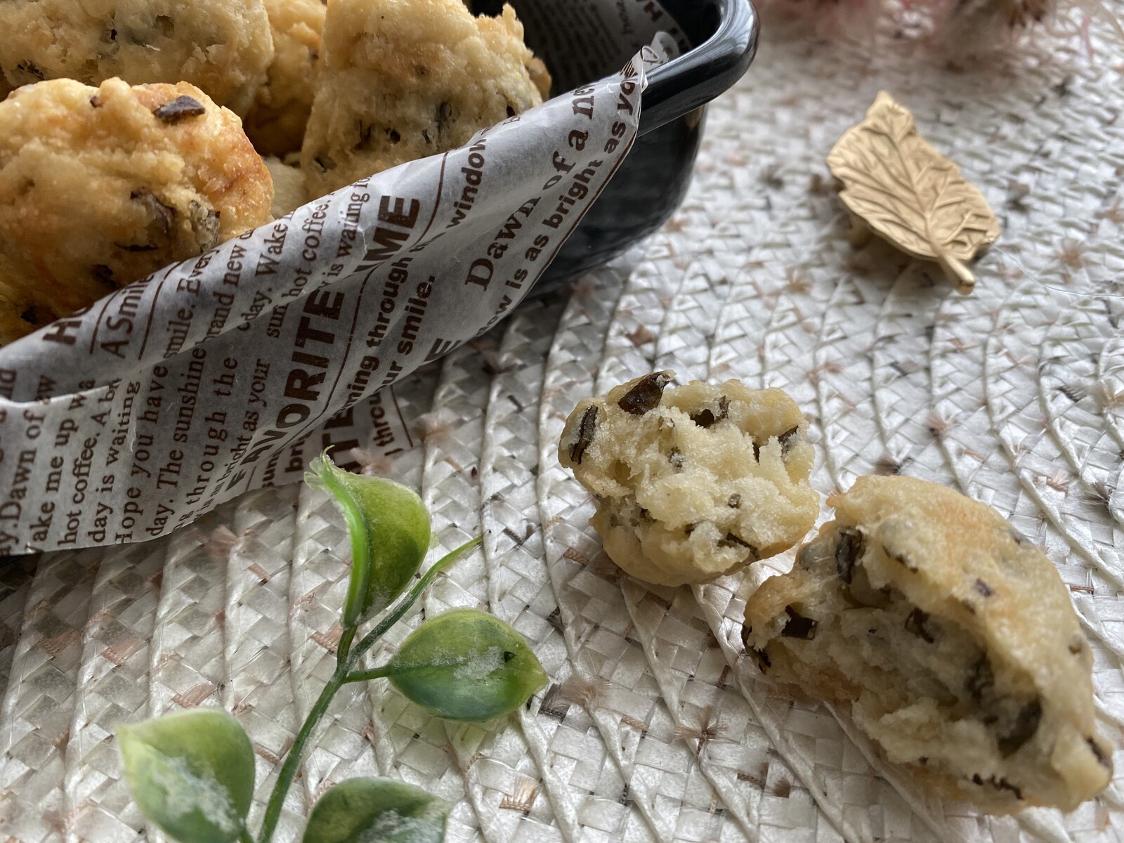 周りの粉の部分に塩 オリーブオイル 刻んだ昆布を加える
