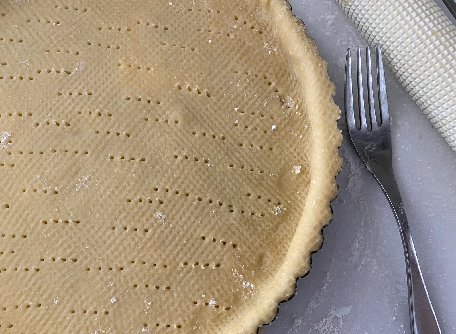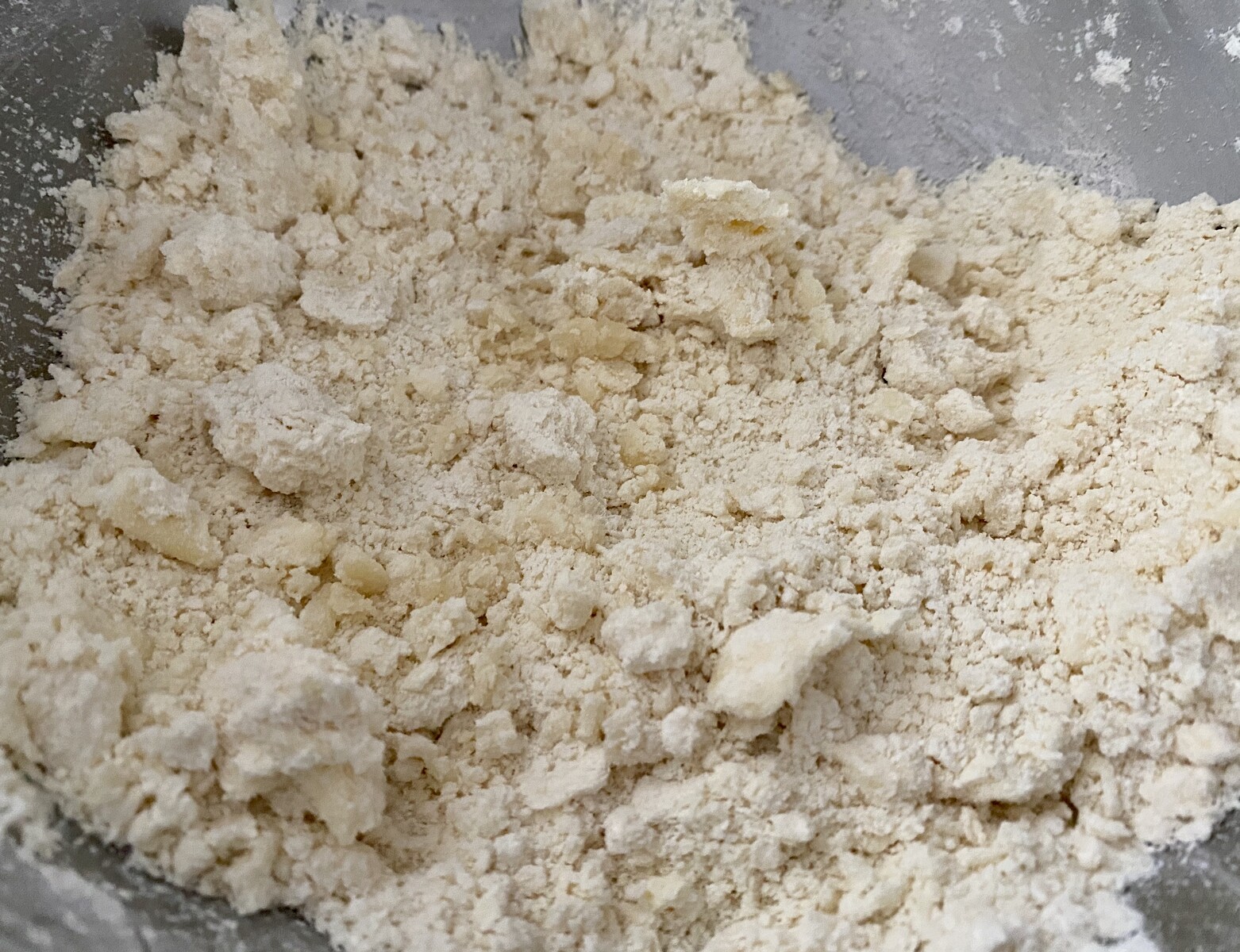①ふるった薄力粉に角切りにしたバターと塩を加え